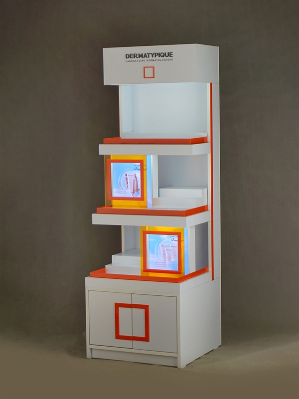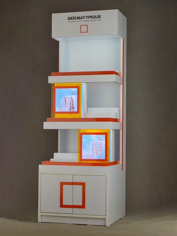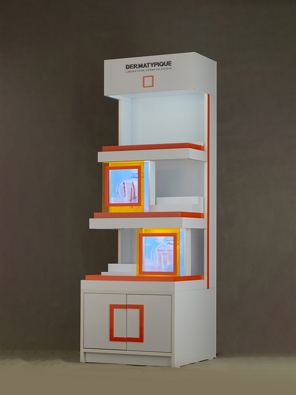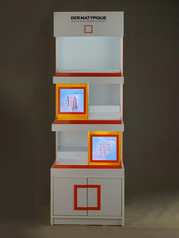 This specialized stand is designed for displaying Dermatypique sunscreen products and captures attention at first glance with its modern appearance and eye-catching color scheme. The organized arrangement and easy access to products provide a professional experience for consumers while simultaneously helping to boost sales in pharmacies or retail stores.