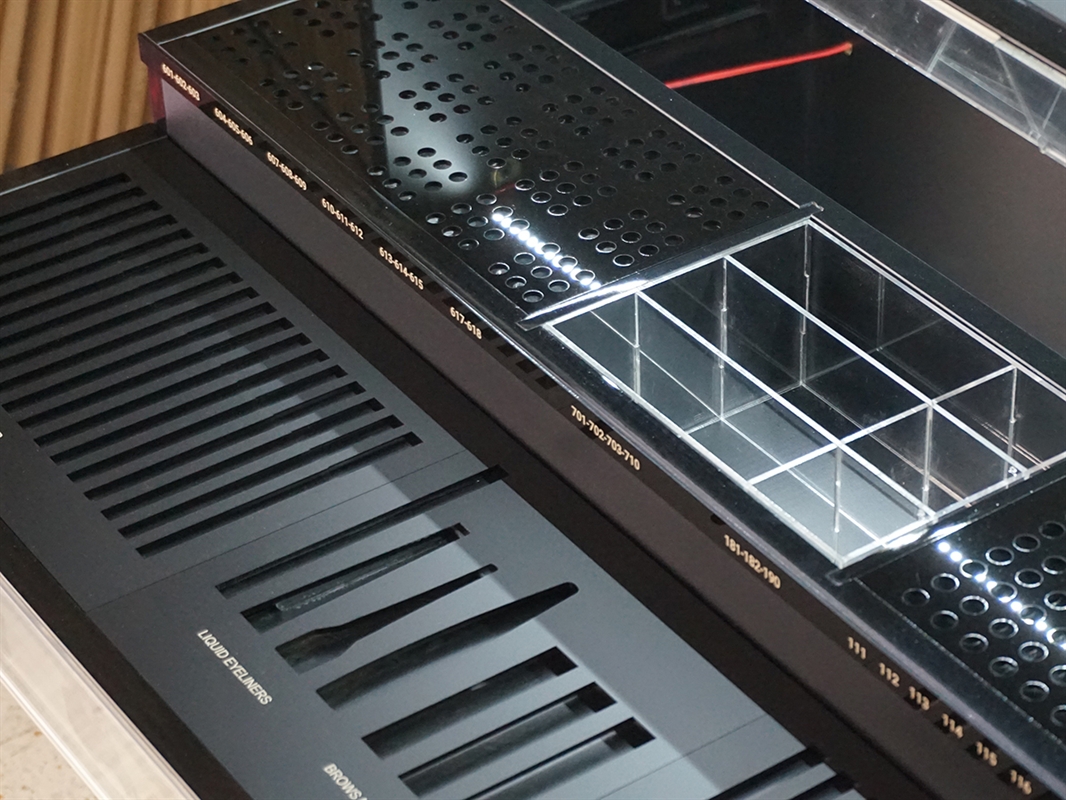 Since beauty advisors are not present in the target stores, testers for all products were essential. The module design allows not only easy access to testers but also flexible rearrangement in case of an increase or decrease in product variety.